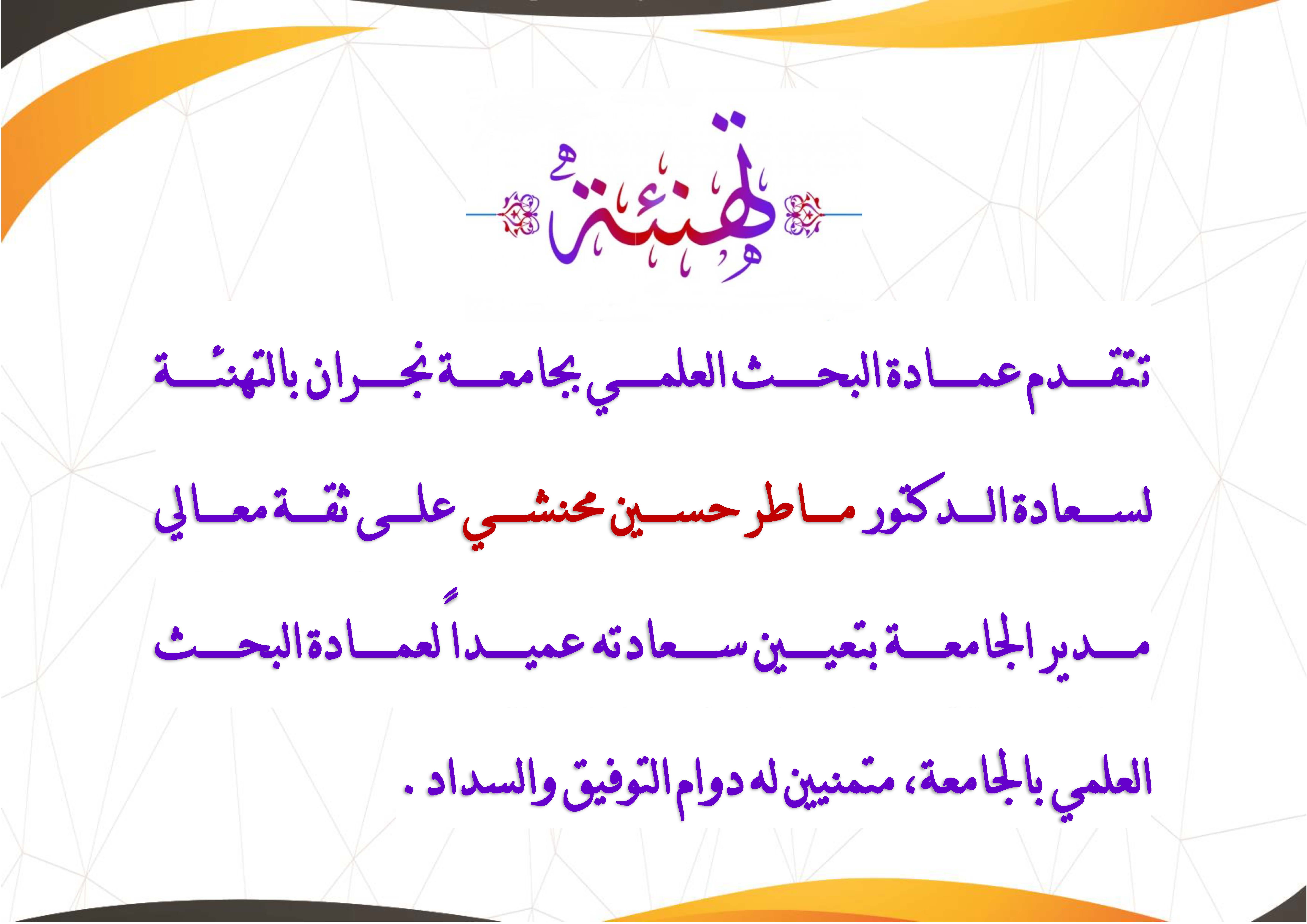 null تعيين الدكتور ماطر حسين محنشي عميداً لعمادة البحث العلمي